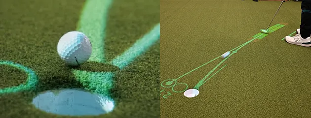 グリーンの傾斜とボールの軌道を床面に